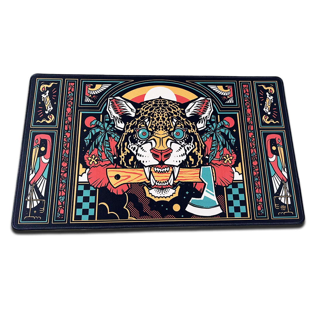 Stitched edge MtG playmat featuring unique artwork by Stablercake. The soft fabric top reduces damage to cards whilst the non-slip rubber backings prevent shifting during play. Measured at 24" x 14" and perfect for additional use as a deskmat or mouse pad!